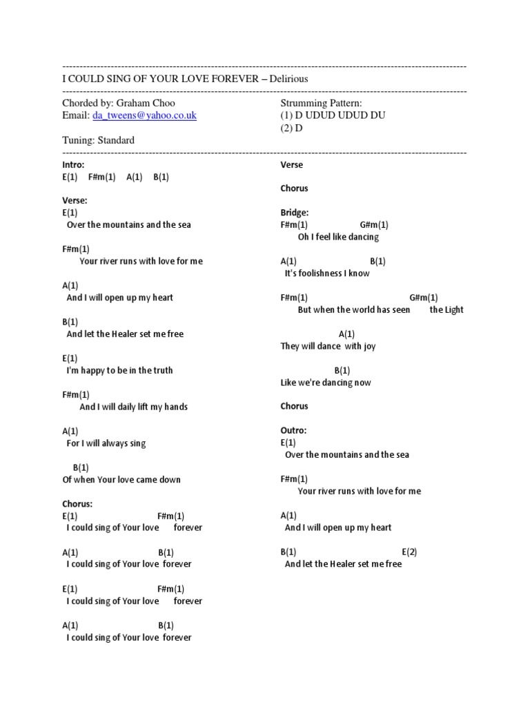 I Could Sing Of Your Love Forever Sheet Music Delirious Guitar Chords Lyrics